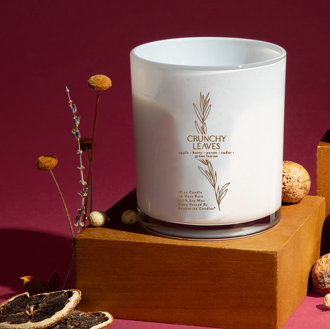 Crunchy Leaves is the CLASSIC fall scent that you'd smell at a store like pier 1, but without the artificial punch in the face. A modern take on the autumn goodness, crisp apples and turning leaves, focusing on the tart nutty smell, no sweetness here.