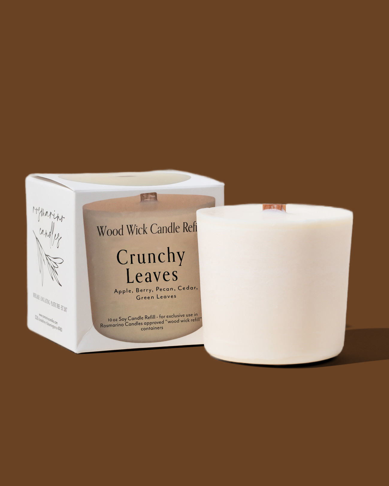 Crunchy Leaves is the CLASSIC fall scent that you'd smell at a store like pier 1, but without the artificial punch in the face. A modern take on the autumn goodness, crisp apples and turning leaves, focusing on the tart nutty smell, no sweetness here.