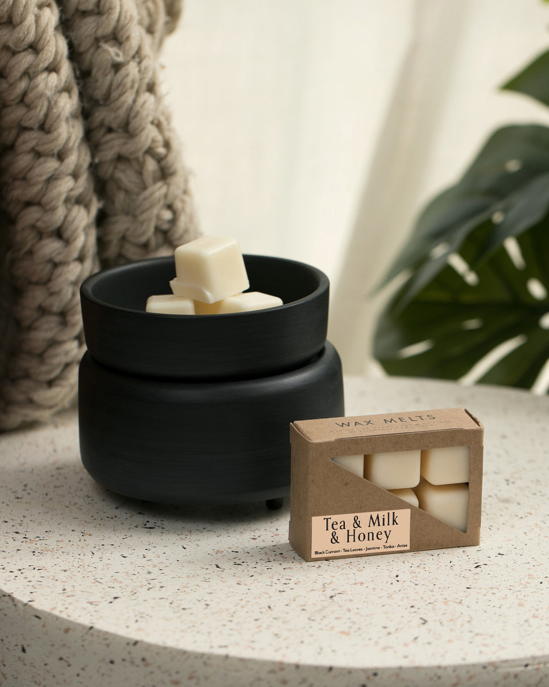 Wax melts are for use in an electric melter. Once turned on, the wax melts like a candle, but without a flame. Wax melts are perfect for folks who can't use open flames in their homes or offices but want the fragrance benefits of burning a candle (hello kids, cats, bosses). We're proud to offer our Wax Melts in plastic free packaging!