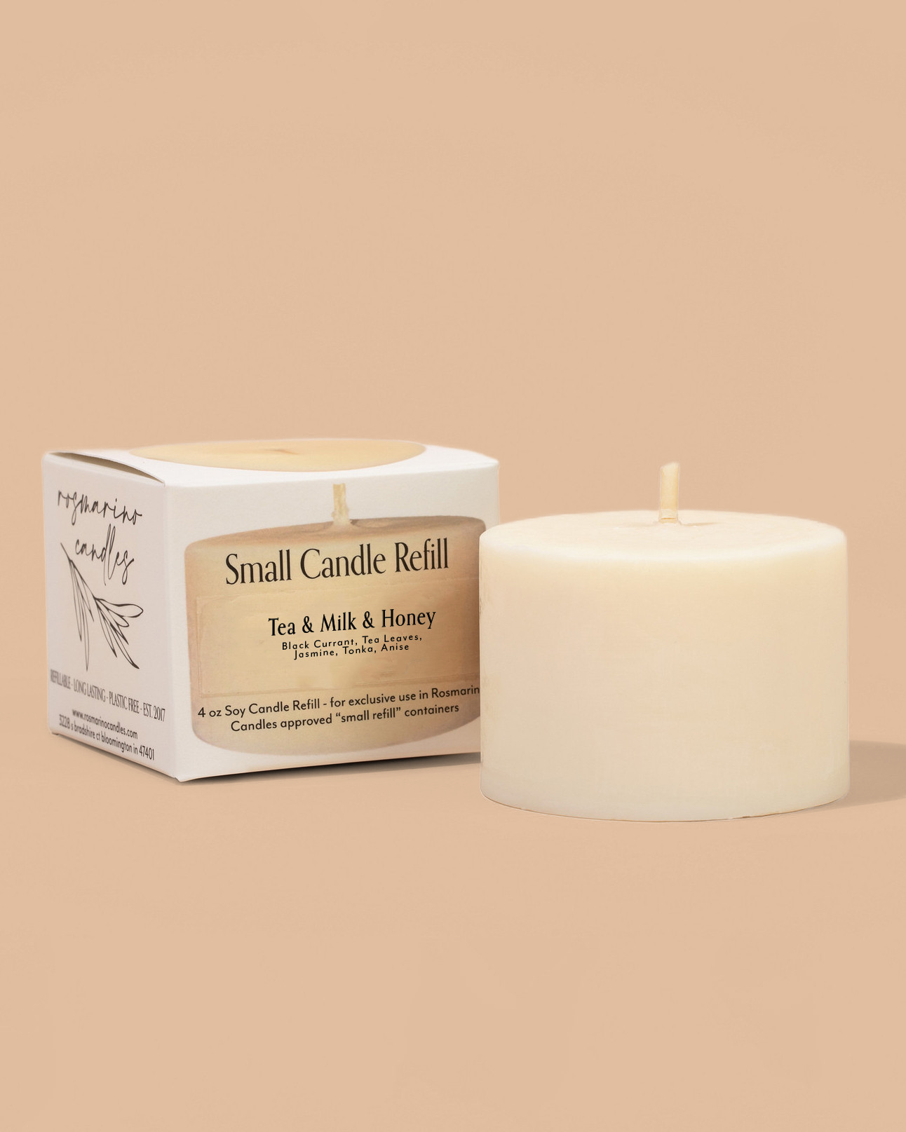 Cut down on your closet space (we all have a shelf of pretty empty candle jars we won't throw away) by buying a refill for your candle tin. These are specially made for Rosmarino Candles Gold Tins, so don't just toss this into any jar you find.